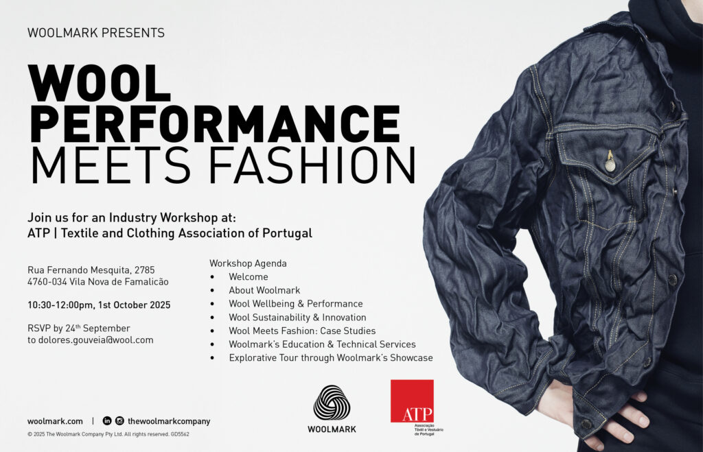 Em colaboração com a ATP – Associação Têxtil de Portugal, a The Woolmark Company, promove no próximo dia 1 de outubro o Workshop “WOOL PERFORMANCE MEETS FASHION.